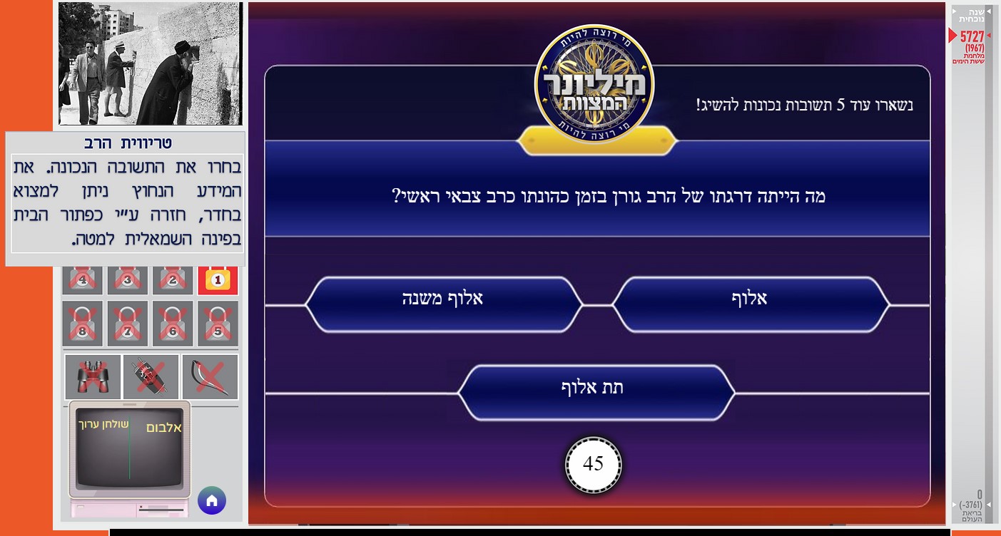 חוויה מאתגרת ומעשירה המנסה לתאר את המציאות כפי שהייתה בזמן שחרור ירושלים במלחמת ששת הימים.