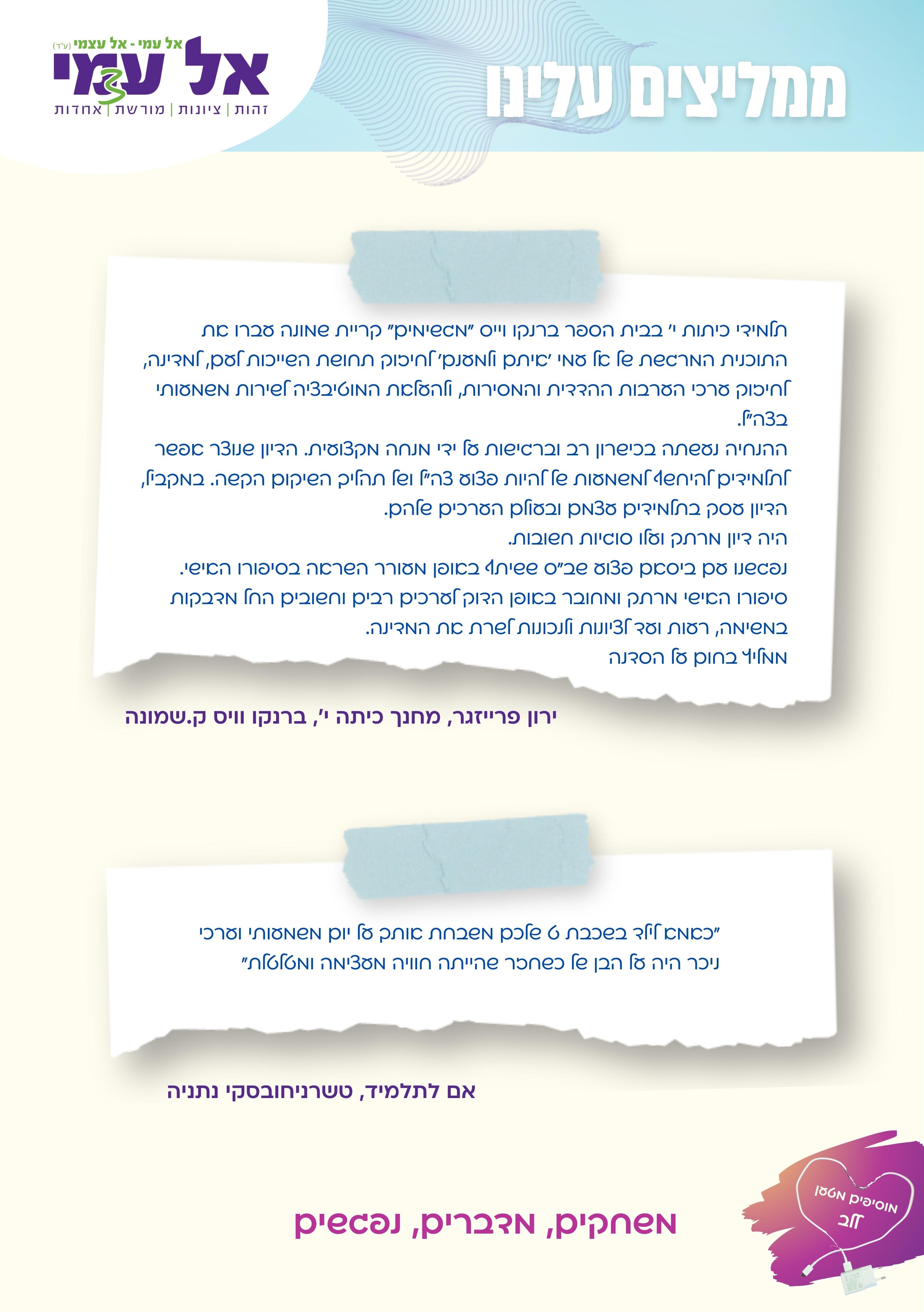 “אל עצמי” מציעה מגוון רחב של פעילויות בתחום הזהות היהודית כגון: